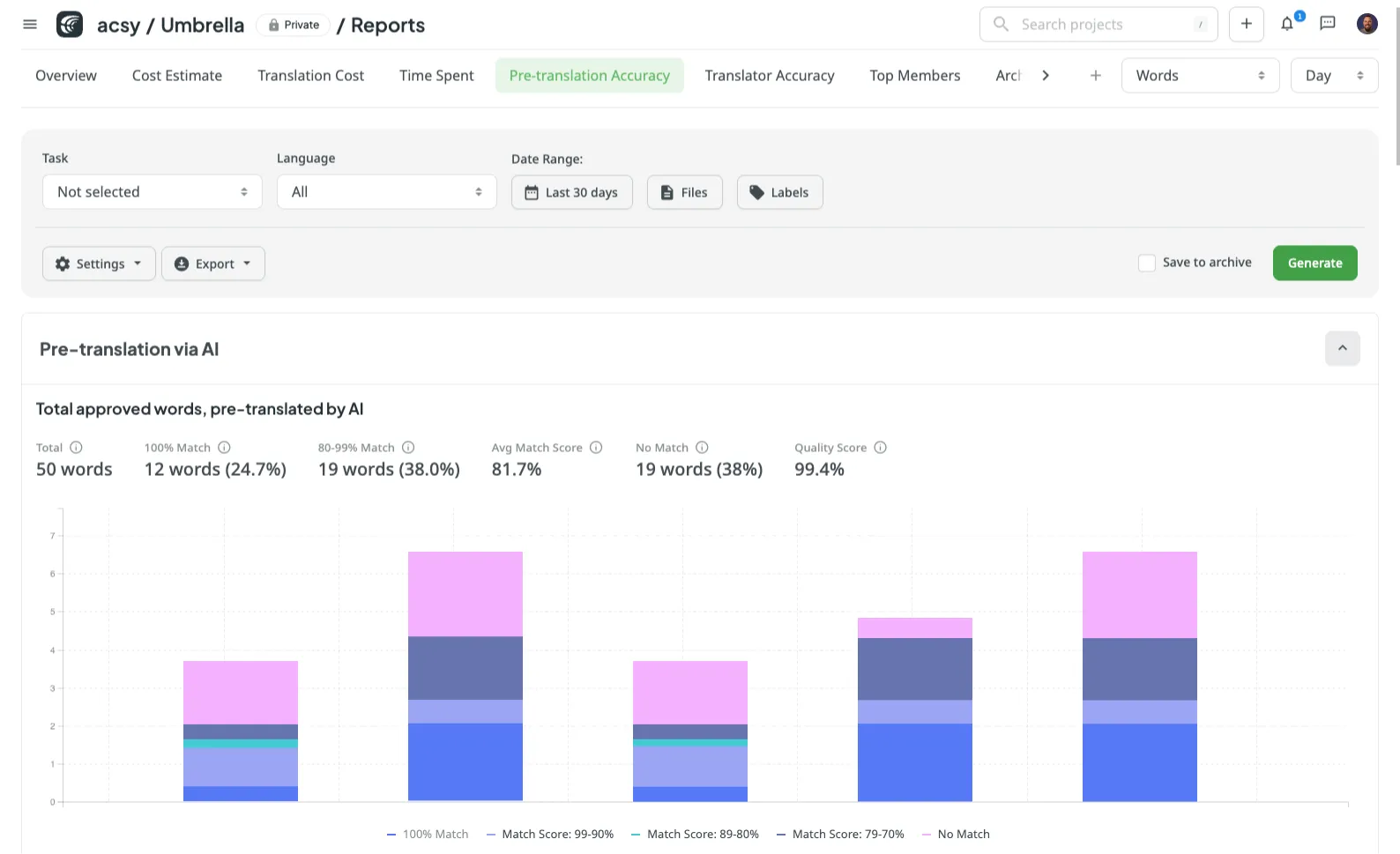 Track how TM and AI reduce spend by eliminating duplicate work.